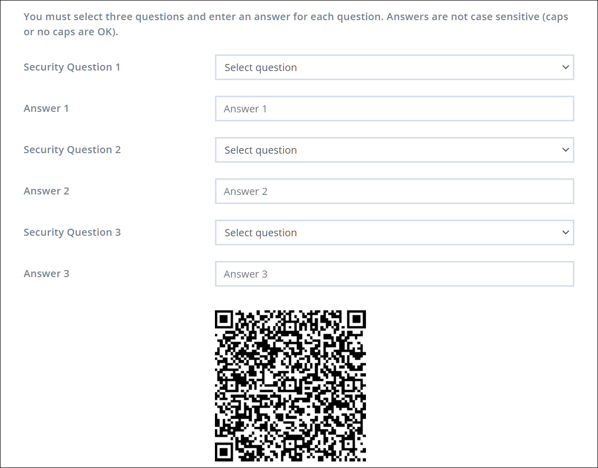 - A security question form will appear (if it doesn’t, click on Configure Two Factor Authentication). Here, choose three security questions and memorize the answers for them.