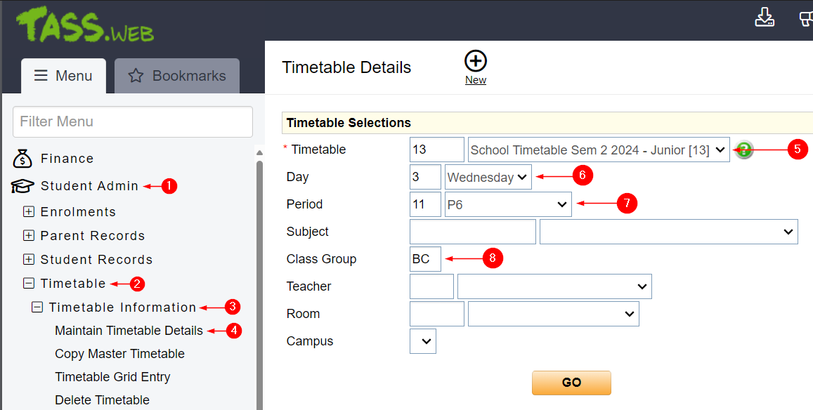 These steps are only to add the ALREADY CREATE class to a teacher's timetable.