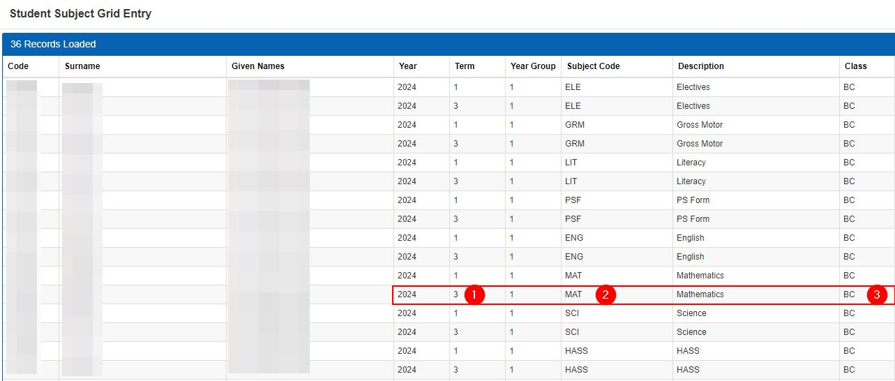 You will be taken to this Student's subject Grid. It shows all classes/subject this Student is enrolled into.
