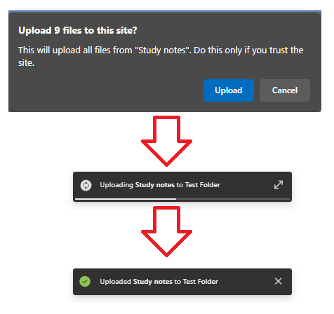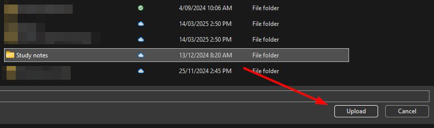 You will get a few pop-ups. If this is the correct folder/file, just confirm it by pressing the blue Upload button.