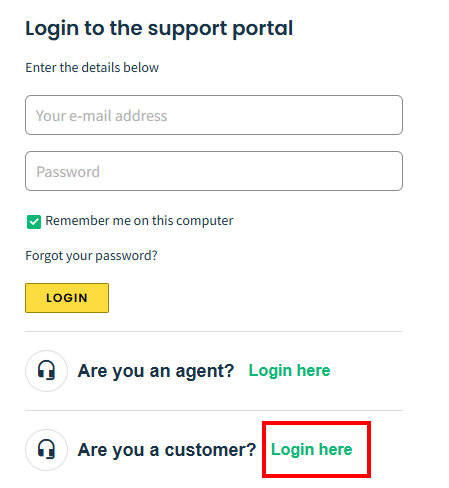 Click on the "Login here" link next to "Are you a customer?"