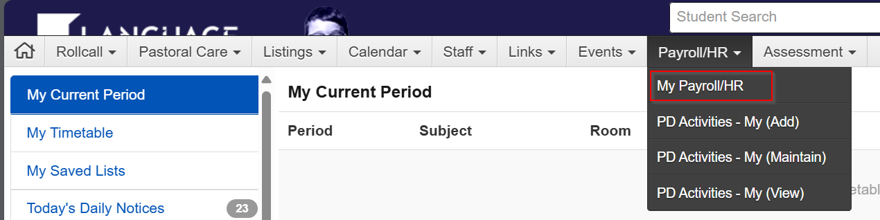 Use the top menu to go to Payroll/HR -> My Payroll/HR