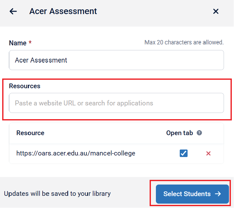 3. Give your Focus Session a name. Type or paste the website(s) you want students to access.
