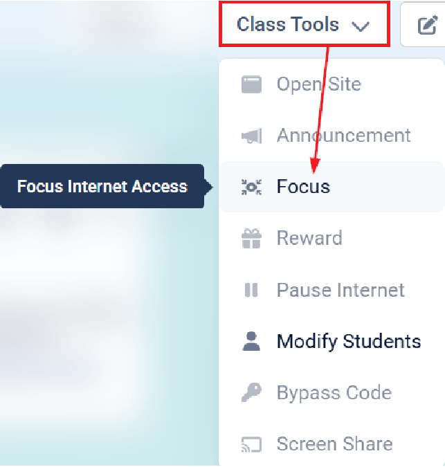 1. Click on Class Tools. Select focus in the drop-down menu.