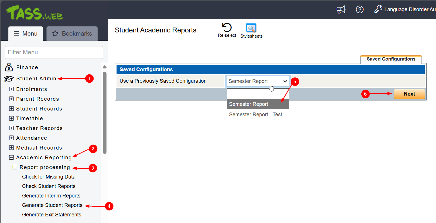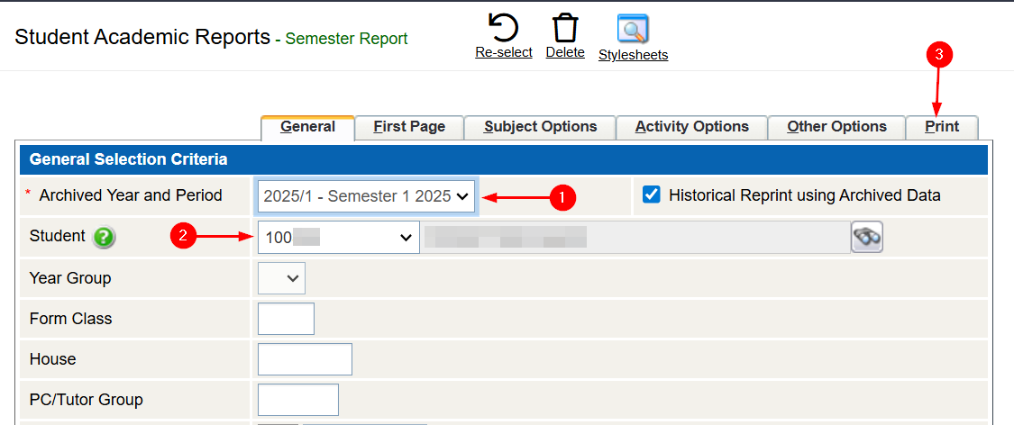 - Student Admin > Academic Reporting > Report Processing > Generate Student Reports.
