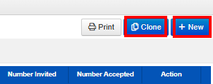 - In the top right-hand corner of the screen, you can create a new event or clone an existing event.