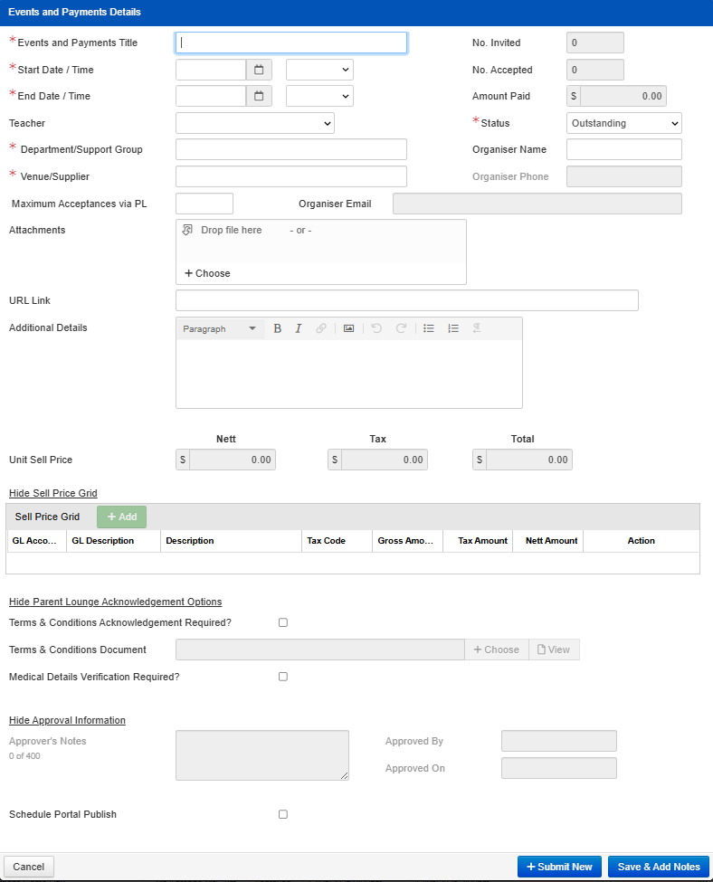 - With a new event, you will need to fill out the below.