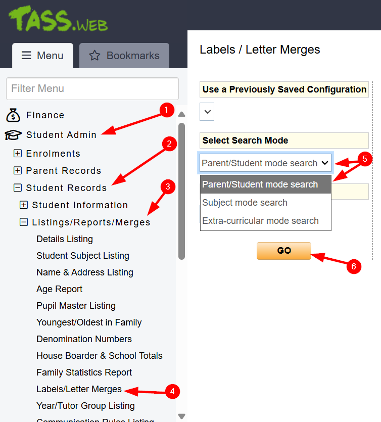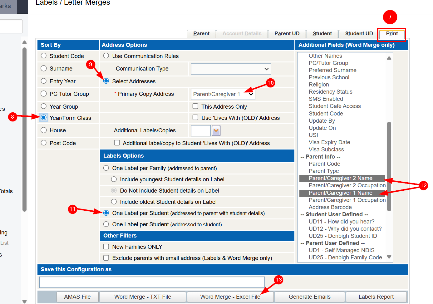 Tass.Web - Exporting family details (Primary Care giver email)