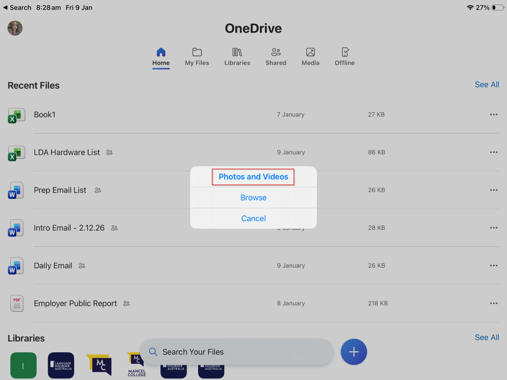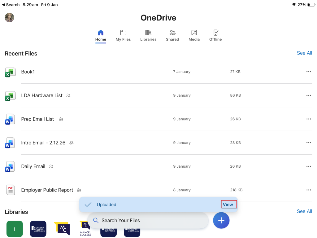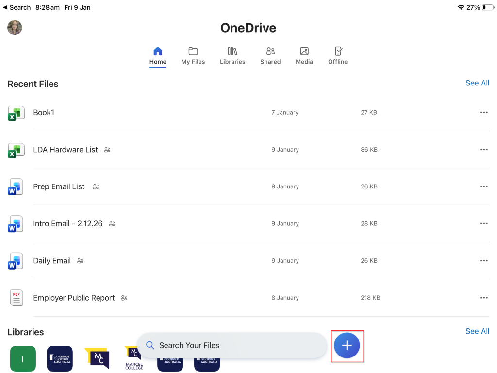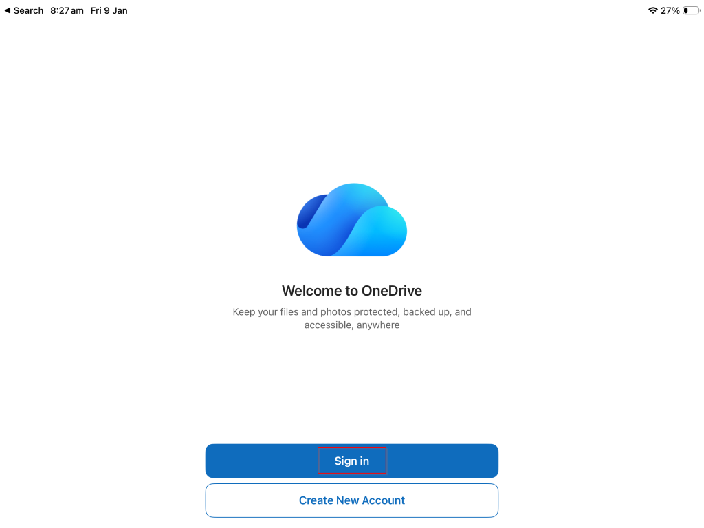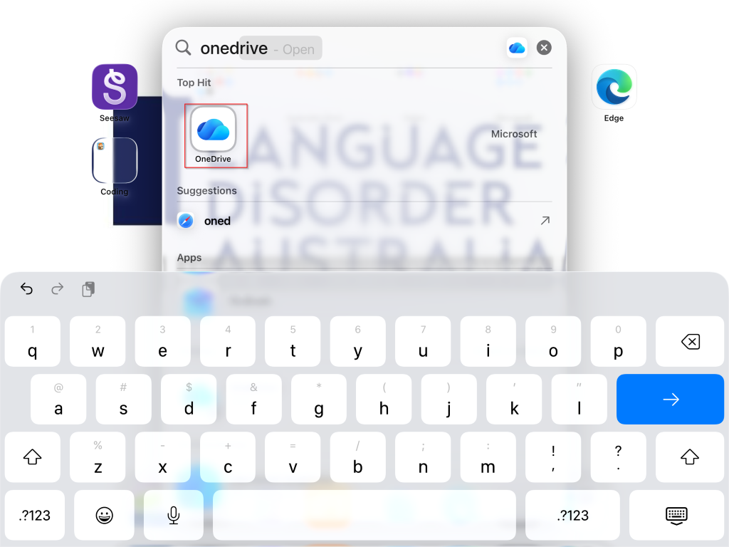 1. Swipe down on iPad home screen to search for OneDrive. Tap on the icon.